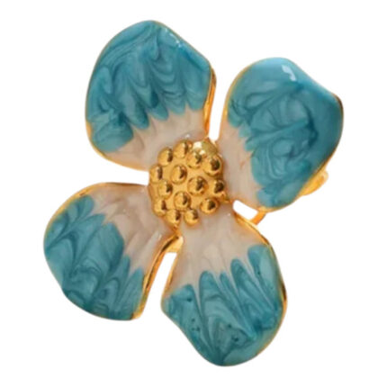 Ατσάλινο Δαχτυλίδι Λουλούδι Σμάλτο Τιρκουάζ-Χρυσό